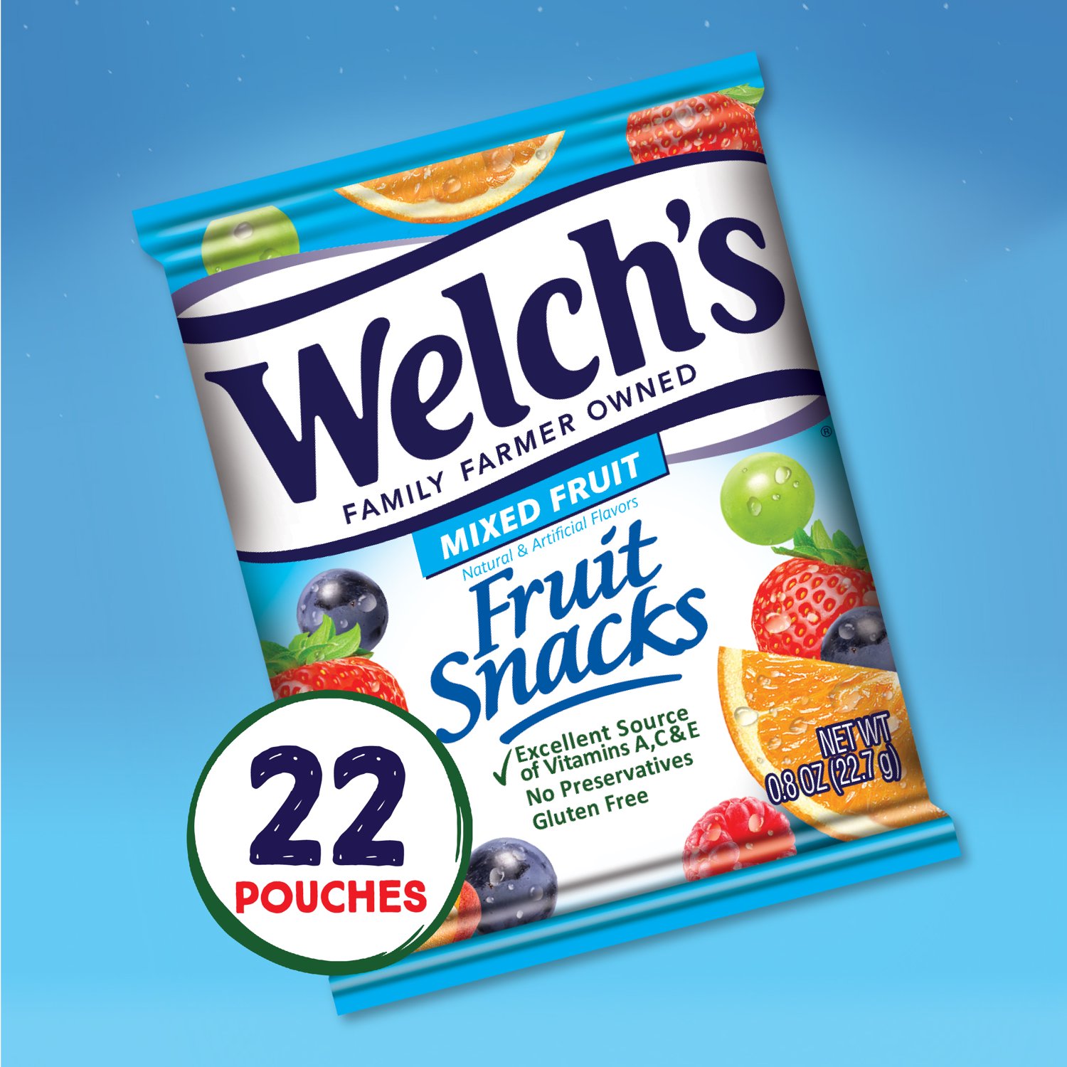 Contains 22 pouches of Welch’s Fruit Snacks, Mixed Fruit Variety